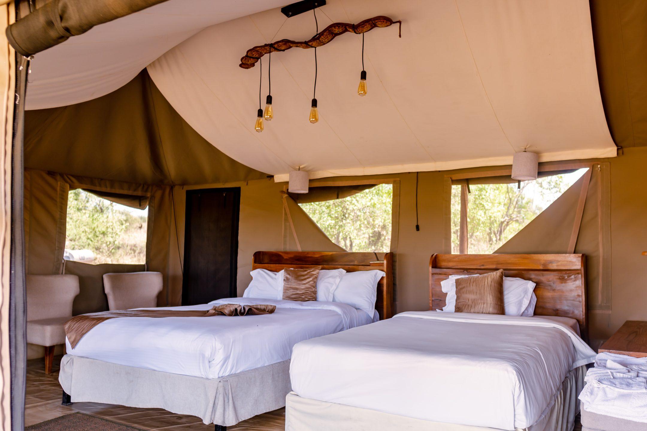 Luxurious tented suites are designed for both style and serenity, featuring spacious interiors, elegant furnishings, and private verandas that open to sweeping views of the savannah. Every detail is crafted to immerse you in the beauty of nature while ensuring the highest level of comfort.
